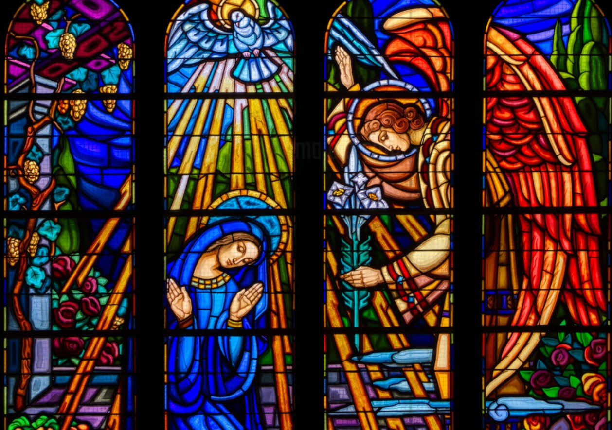 Et voici qu’un Ange, debout devant elle, lui dit: – «Ne crains pas, Marie, Tu as trouvé Grâce devant le Maître de toute chose. Tu concevras de son Verbe.».