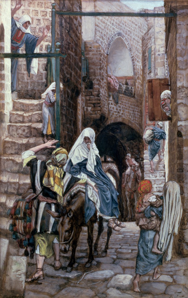 Et le Grand Prêtre dit: «Appelez-moi les jeunes filles de la Tribu de David, qui sont sans tache.». Ses serviteurs partirent, cherchèrent partout et en trouvèrent sept. Sept ce n’était pas beaucoup sur tout un Peuple mais cela aurait quand même dû suffire. Mais seulement à ce moment-là le Grand Prêtre se souvint que la jeune Marie était de la Tribu de David et qu’elle était sans tache devant Dieu.